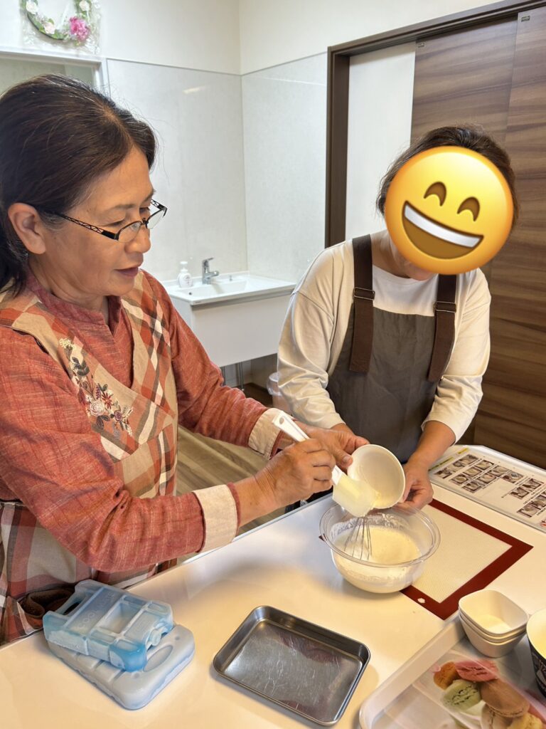 生徒さん2人で協力しながら、2種類のクリーム作り