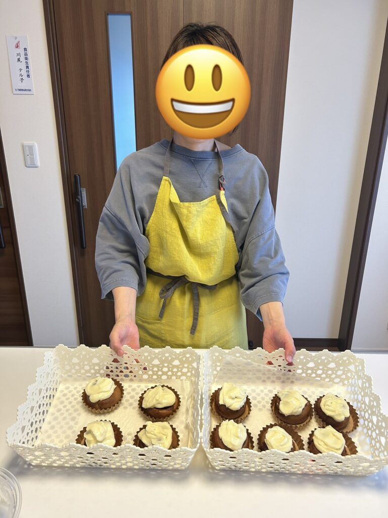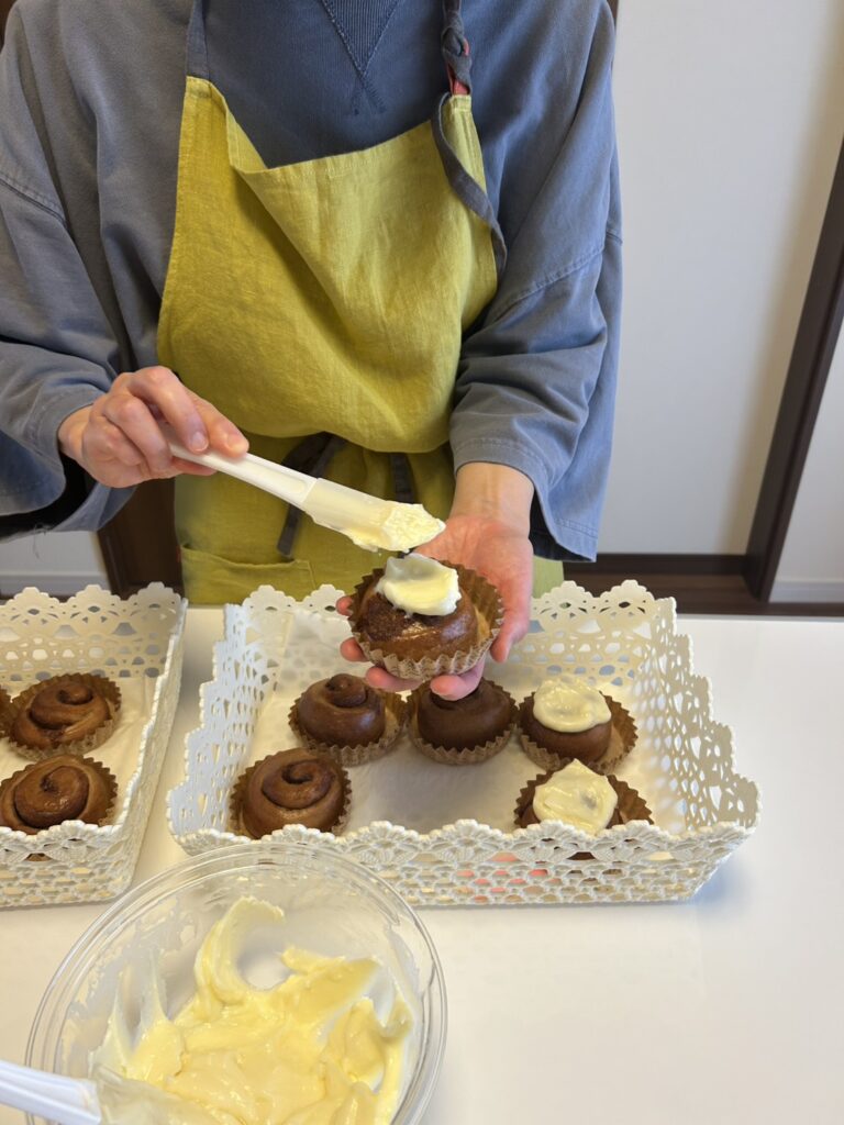 焼き上がりにはクリームチーズフロスティングをたっぷり乗せて完成✨