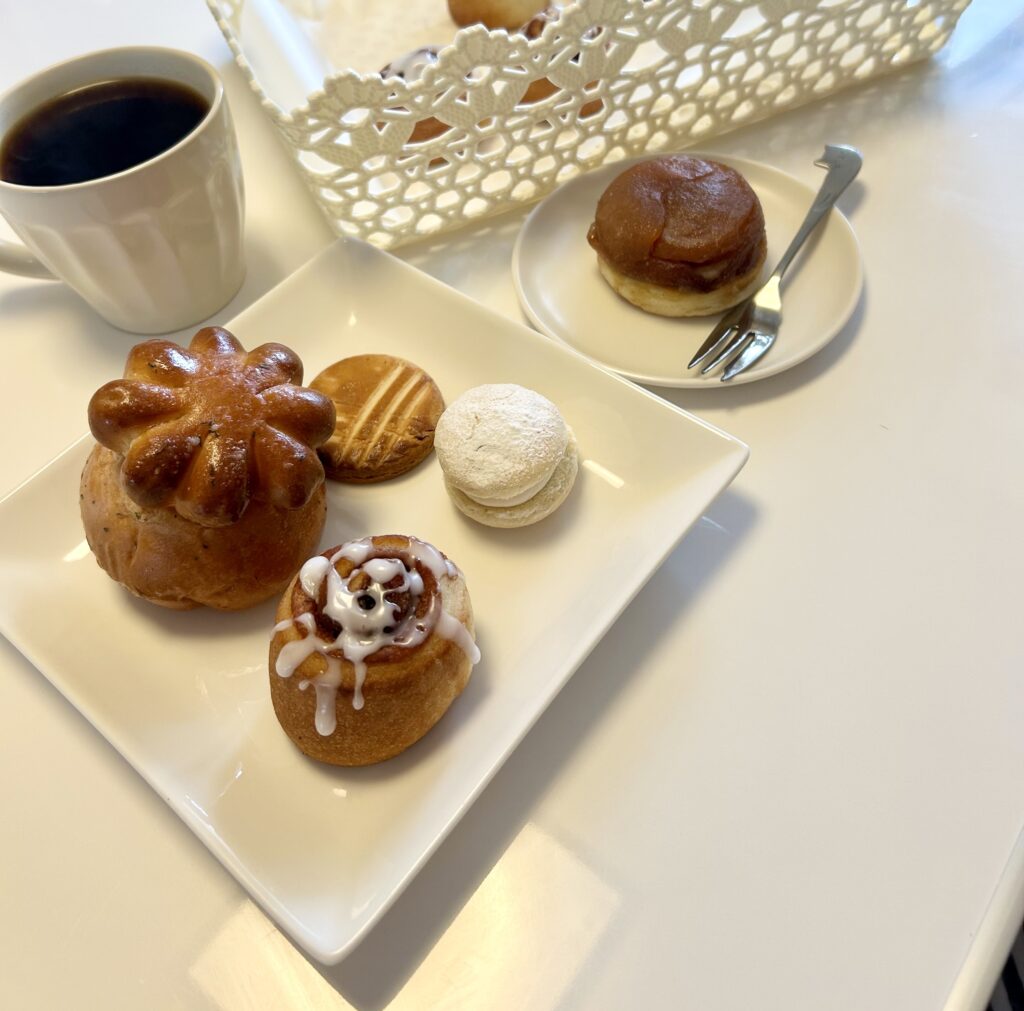 焼き立てのシナモンロールとブッセに、